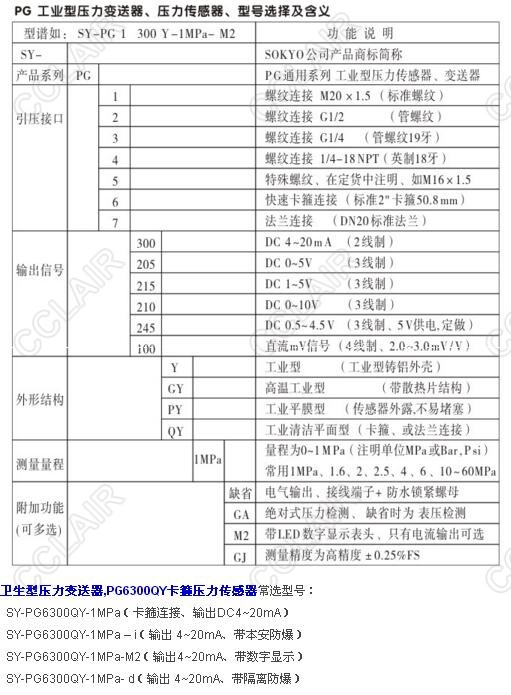 SY-PG6300QY-1MPa,SY-PG6300QY-1MPa-i, PG6300QY卡箍壓力傳感器