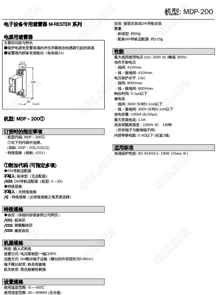 MDP-100/MDP-200, MDP-100/A33,MDP-100/Q,最大負(fù)載1A 插入型MDP-200/A33,MDP-200/Q避雷器