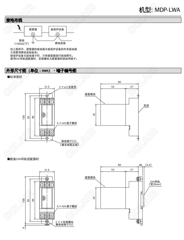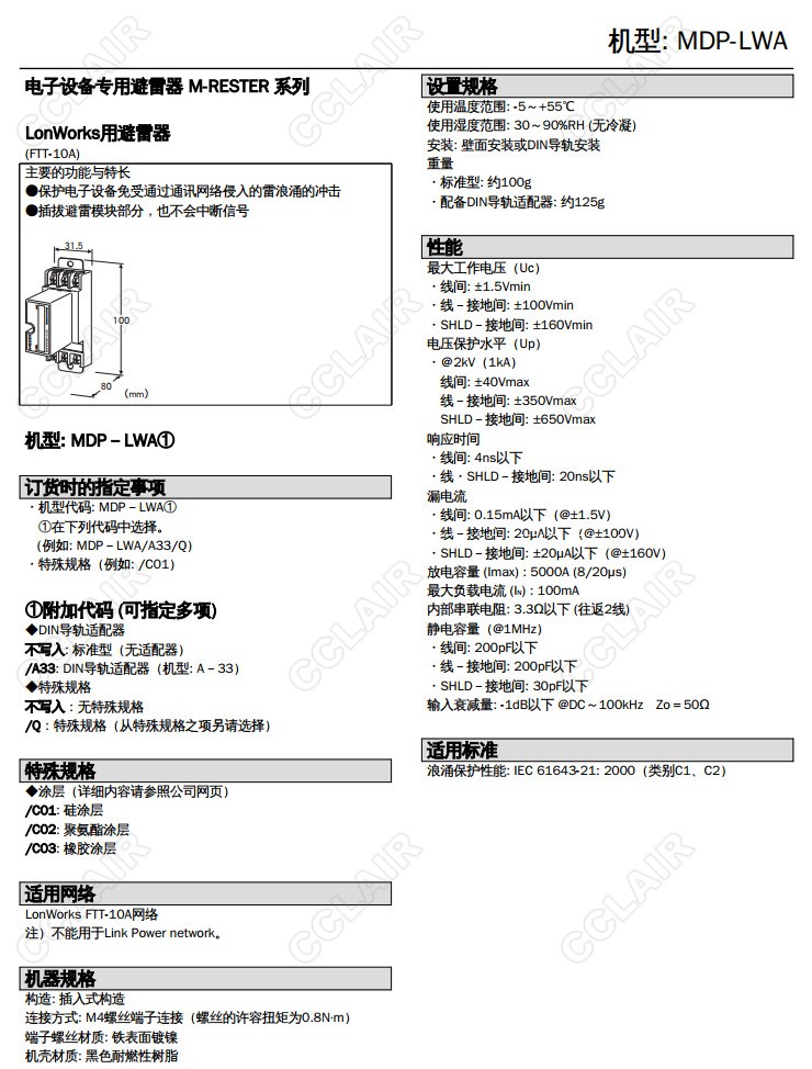 MDP-LWA,MDP-LWA/A33,MDP-LWA/Q, LONWORKS(FTT-10A)用 插入型避雷器