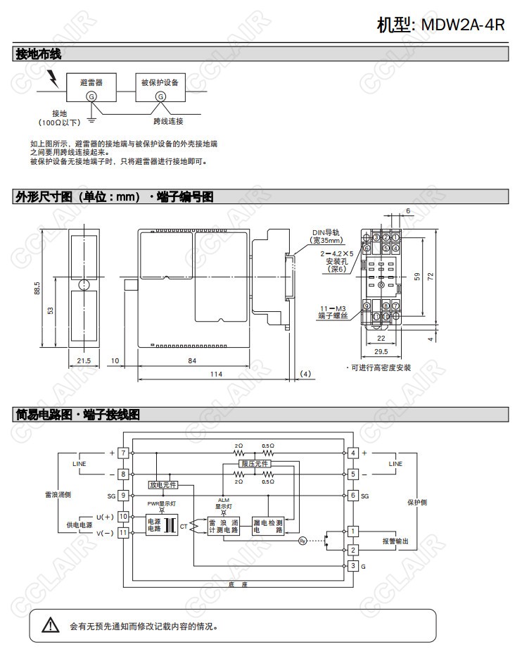 MDW2A-4R, MDW2A-4R-M2,MDW2A-4R-R,MDW2A-4R,MDW2A-4R-P, RS-485/RS-422用插入型壽命顯示功能避雷器