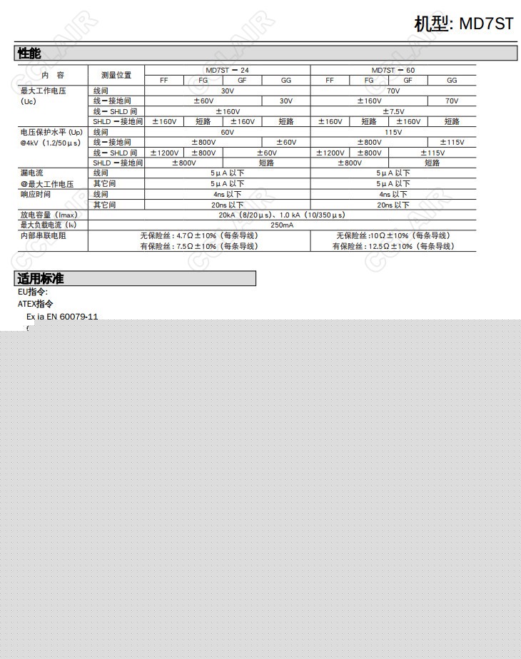 MD7ST,MD7ST-24FF00,MD7ST-24FF,MD7ST-60FF,MD7ST-24FG,MD7ST-60FG,4-20mA直流、脈沖信號用 超薄型避雷器