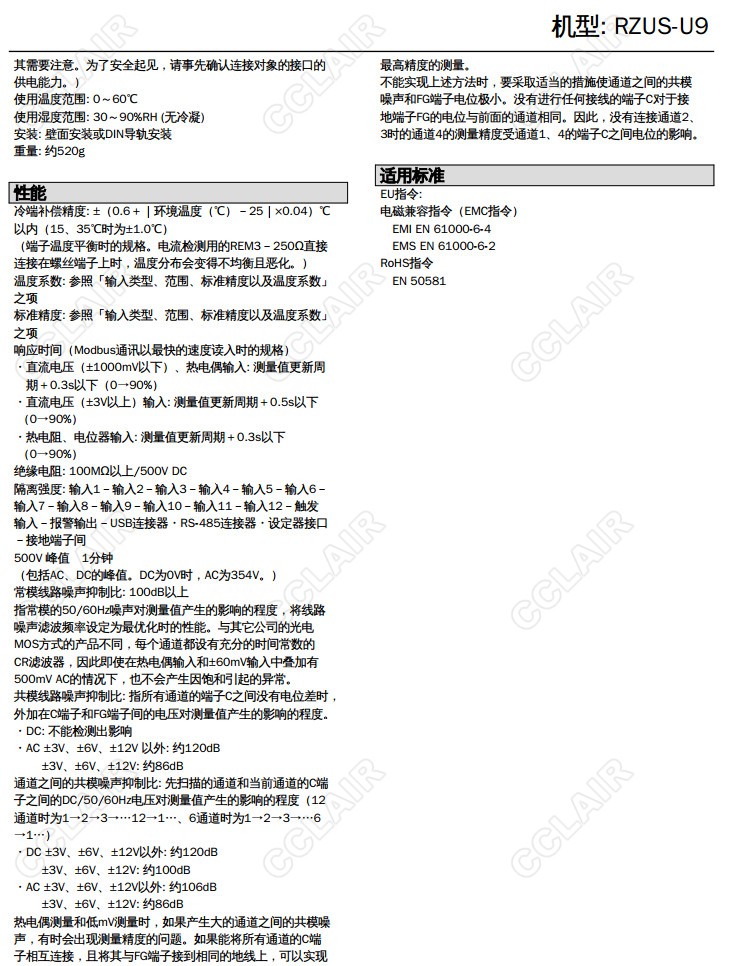 RZUS-U9,RZUS-U9T/MSR,12點(diǎn)萬(wàn)能模擬量信號(hào)輸入