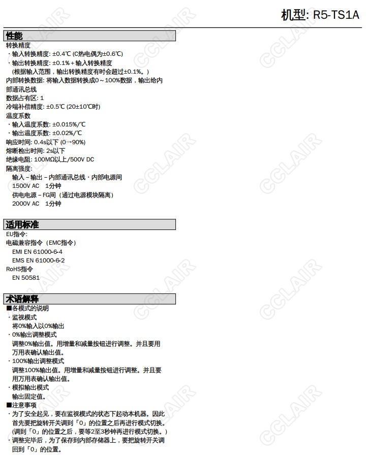 R5-TS1A,R5-TS1AW/Q,R5-TS1AS/Q,R5-TS1AW/Q,熱電偶信號輸入輸入信號∶K, E, J, T, B, R, S, C, N, U, L, P,輸出信號∶DC4~20mA