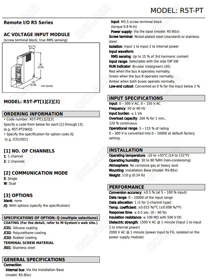 R5T-PT,R5-PT2W/Q,R5-PT1S,R5-PT1W,R5-PT2S,R5-PT2W,交流電壓信號(hào)輸入模塊