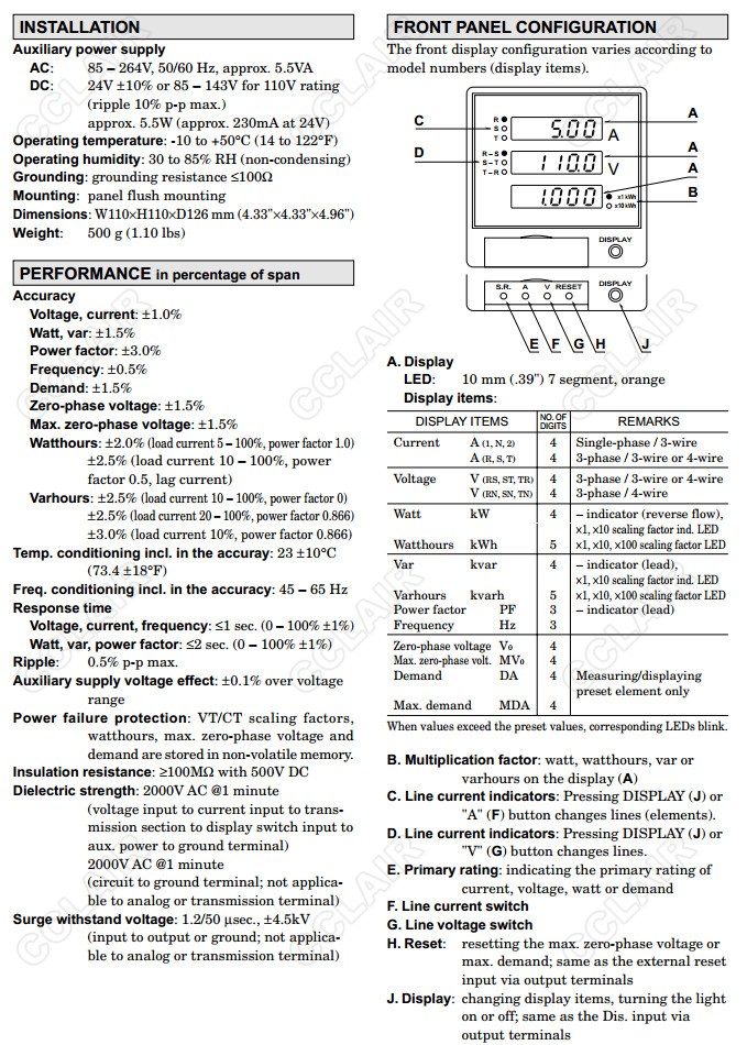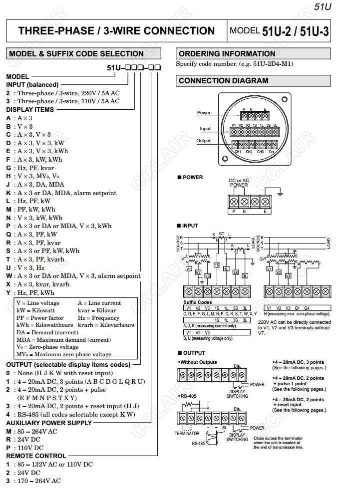 51U,51U-0,51U-1,51U-2,51U-3,51U-4,配電盤嵌入式多功能電量表
