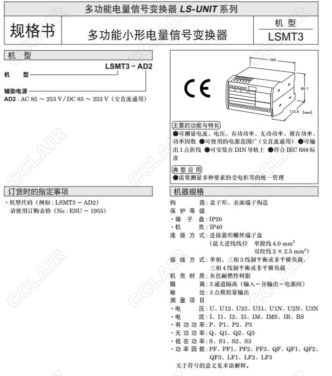 LSMT3,LSMT3-AD2,多功能小型電量信號變換器