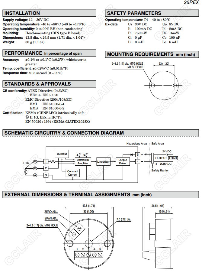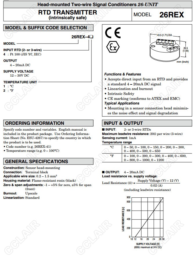 26REX,26REX-41,26REX-42,熱電阻信號(hào)變換器(本質(zhì)安全型防爆)
