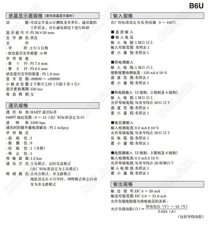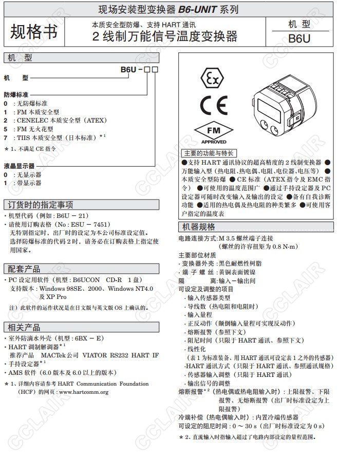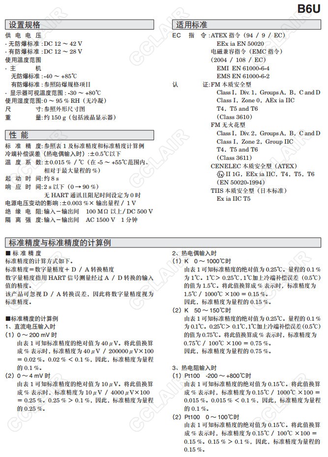 B6U,B6U-0,B6U-1,B6U-2,B6U-5,B6U-7,線制萬能信號溫度變換器(本質安全型防爆、支持HART通訊)