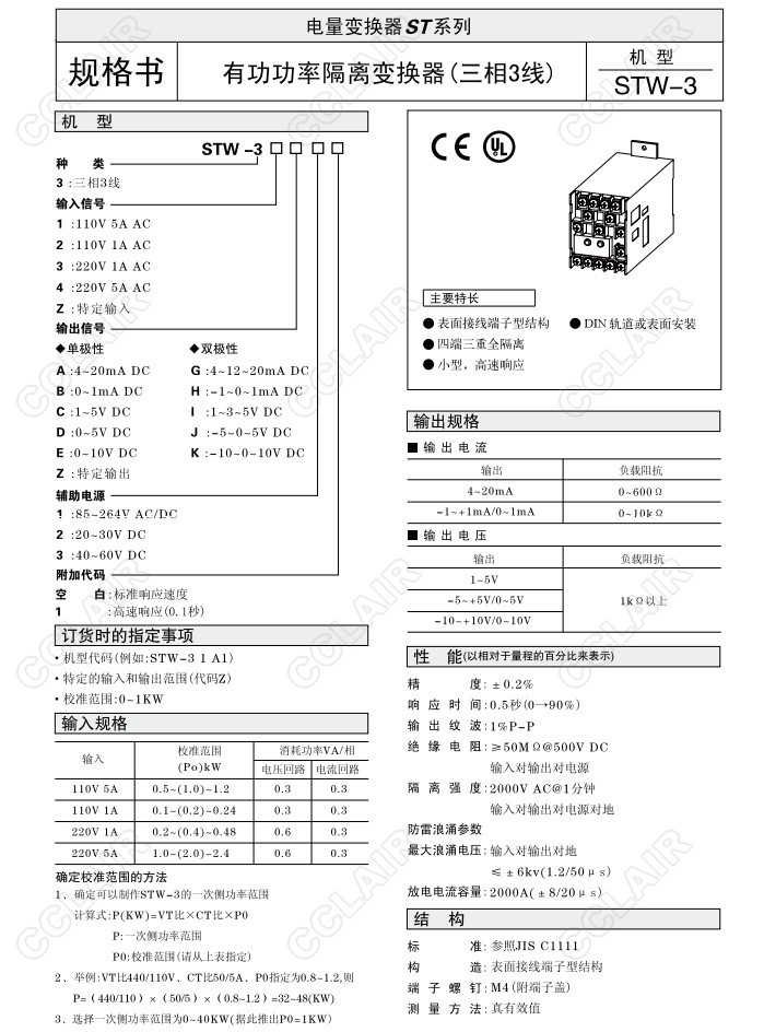 STW-3,STW-3 1 A,STW-3 2 A,STW-4 1 A,STW-3 Z A,有功功率隔離變換器(三相3線(xiàn))