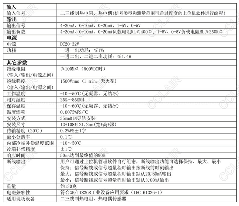 DST-81500系列薄型溫度變送隔離器將現(xiàn)場的熱電阻或熱電偶信號經(jīng)過隔離放大處理,轉(zhuǎn)換為與溫度成線性的 直流信號輸出至控制系統(tǒng),用作熱電偶溫度變送時,具有冷端溫度自動補償功能??捎门涮椎纳衔粰C軟件進行參數(shù) 修改,可以與單元組合儀表及DCS、PLC等系統(tǒng)配套使用,給予現(xiàn)場儀表信號隔離、信號轉(zhuǎn)換、信號分配、信號處理 等,從而提高工業(yè)生產(chǎn)過程自動控制系統(tǒng)的抗干擾能力,保證系統(tǒng)的穩(wěn)定性和可靠性。本產(chǎn)品品種分為一進一出、 一進二出、二進二出,且輸入、輸出磁隔離。