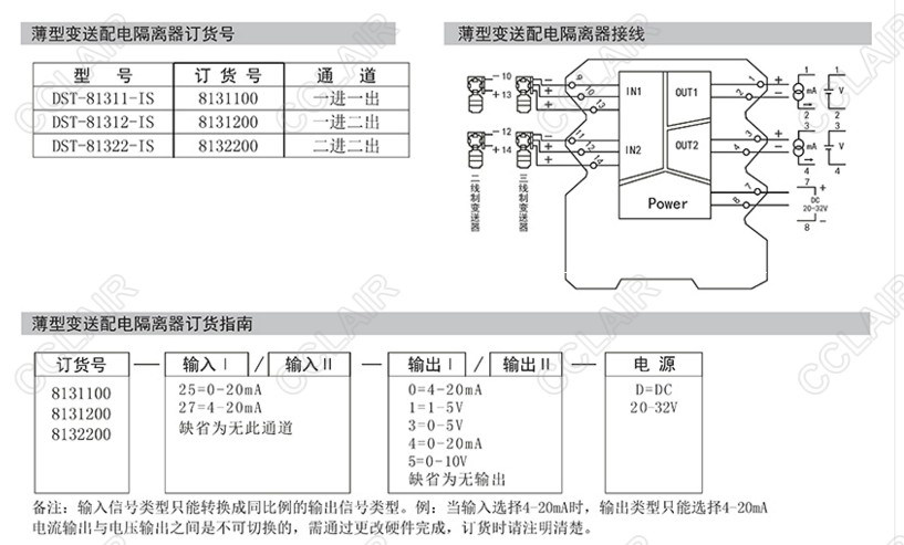 DST-81300系列薄型變送配電隔離器給二、三線制變送器提供隔離的電源電壓,將變送器產(chǎn)生的直流電流信號 經(jīng)過隔離傳送,轉(zhuǎn)換成所需的信號給其它儀表??梢耘c單元組合儀表及DCS、PLC等系統(tǒng)配套使用,給予現(xiàn)場儀表信 號隔離、信號轉(zhuǎn)換、信號分配、信號處理等,從而提高工業(yè)生產(chǎn)過程自動控制系統(tǒng)的抗干擾能力,保證系統(tǒng)的穩(wěn)定 性和可靠性。本產(chǎn)品品種分為一進(jìn)一出、一進(jìn)二出、二進(jìn)二出,且輸入、輸出磁隔離。