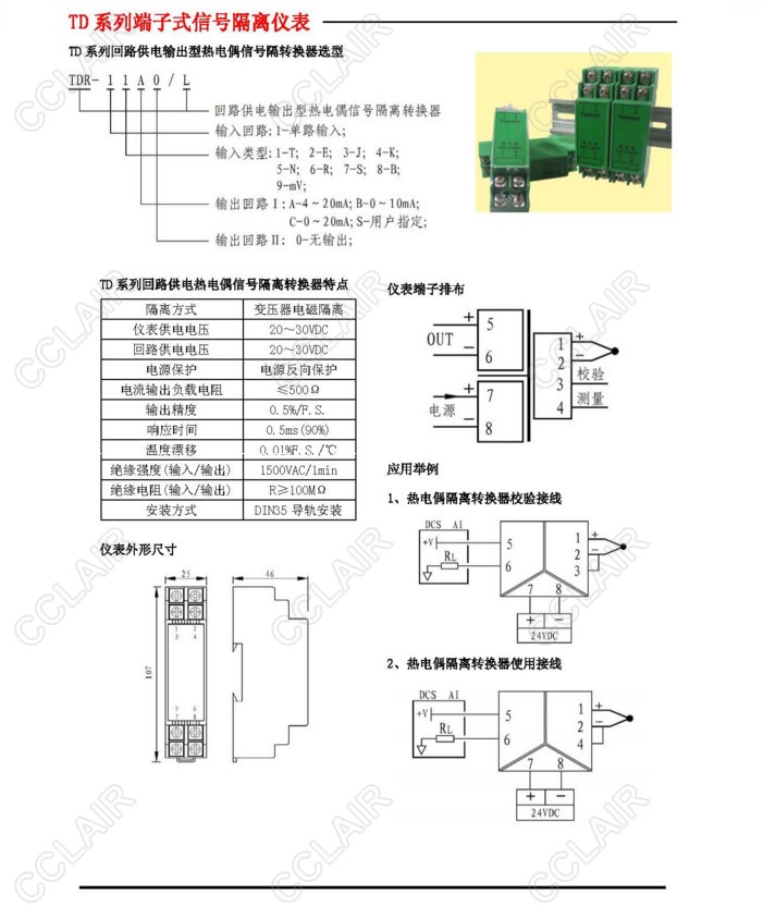TDR-11A0/L,TDR-12A0/L,TDR-13A0/L,TDR-14A0/L,TDR-15A0/L,回路供電熱電偶隔離轉換器