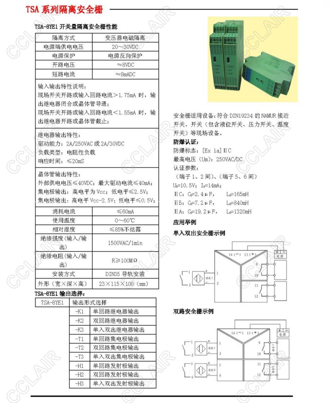 TSA-8YE1-K1,TSA-8YE1-K2,TSA-8YE1K3,TSA-8YE1-T1,TSA-8YE1隔離安全柵