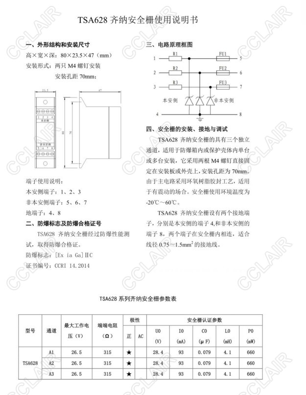 TSA628,齊納安全柵
