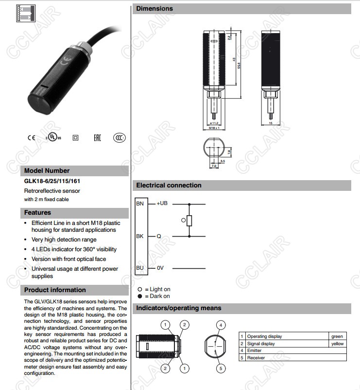 GLK18-6/25/115/161,GLK18-6/59/115/161,反射板型光電開關(guān)