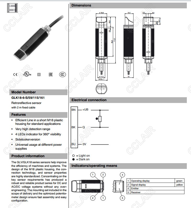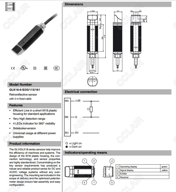 GLK18-6-S/25/115/161,GLK18-6-S/59/115/161,反射板型光電開關