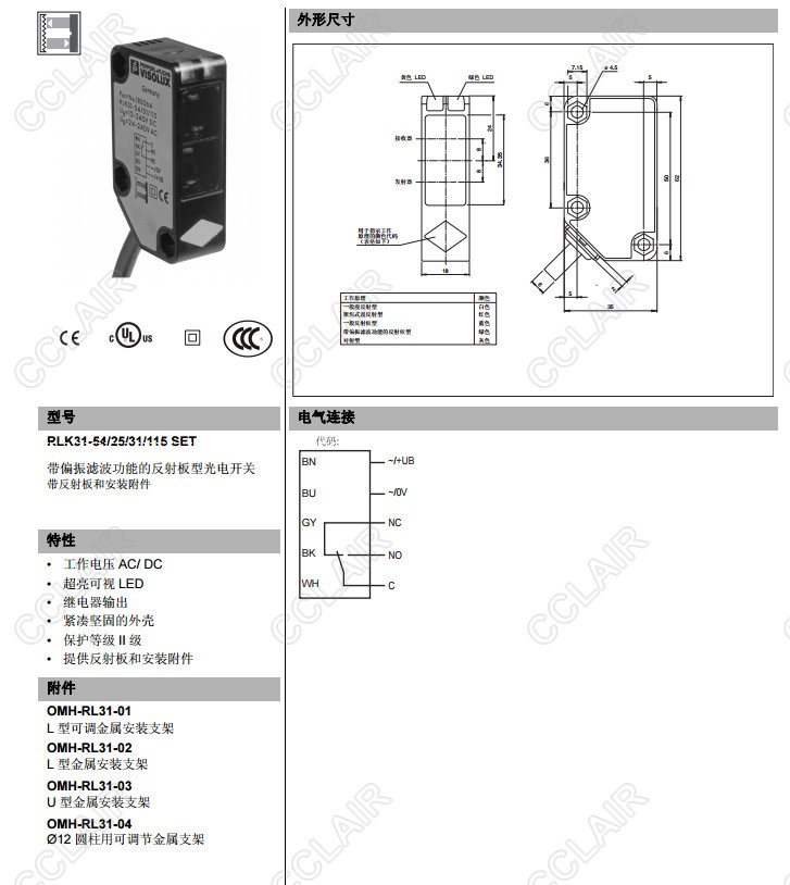 RLK31-54/25/31/115/SET,反射板型光電開關