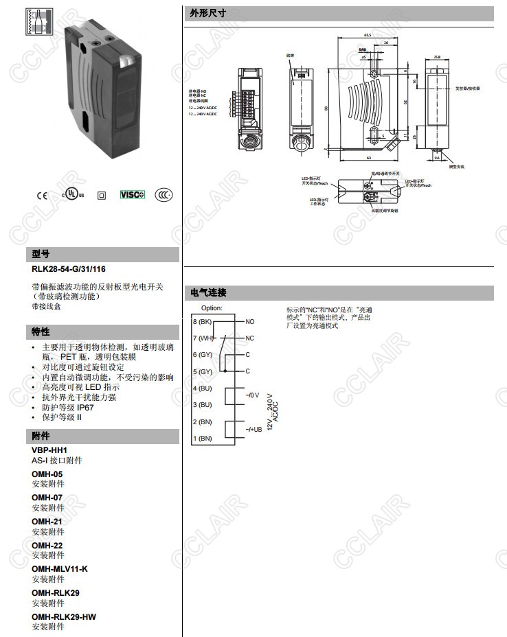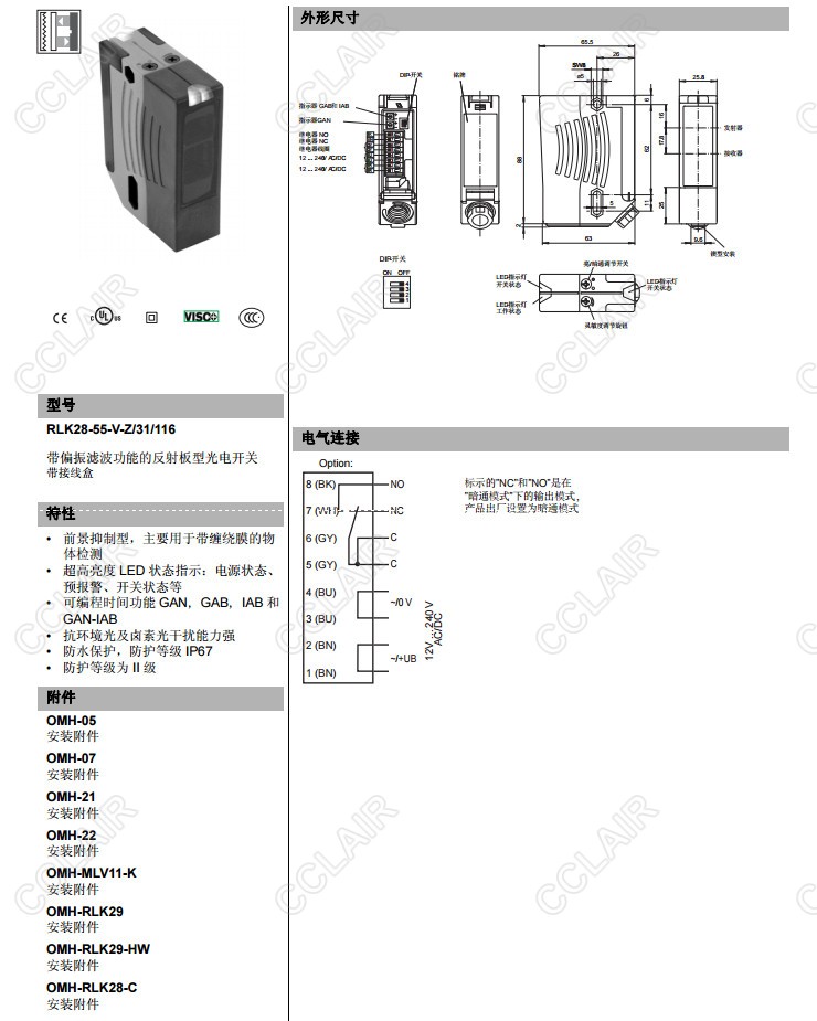 RLK28-54-G/31/116,RLK28-55-LAS-Z/31/116,RLK28-55-V-Z/31/116,反射板型傳感器