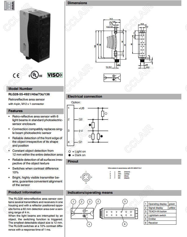 RLG28-55-4921/40a/73c/136,反射板型傳感器