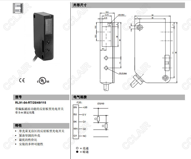 RL91-54-RT/25/49/115,反射板型傳感器