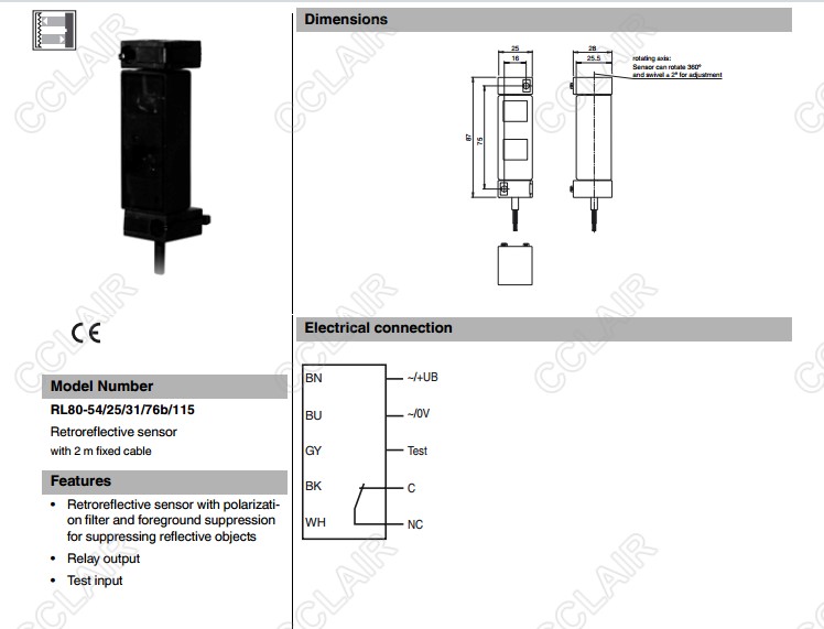 RL80-54/25/31/115,RL80-54/25/31/76b/115,反射板型傳感器