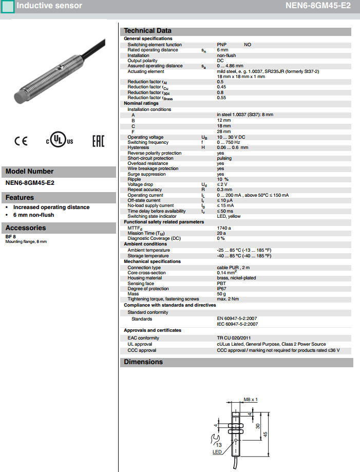 NEN6-8GM45-E0,NEN6-8GM45-E2感應式傳感器