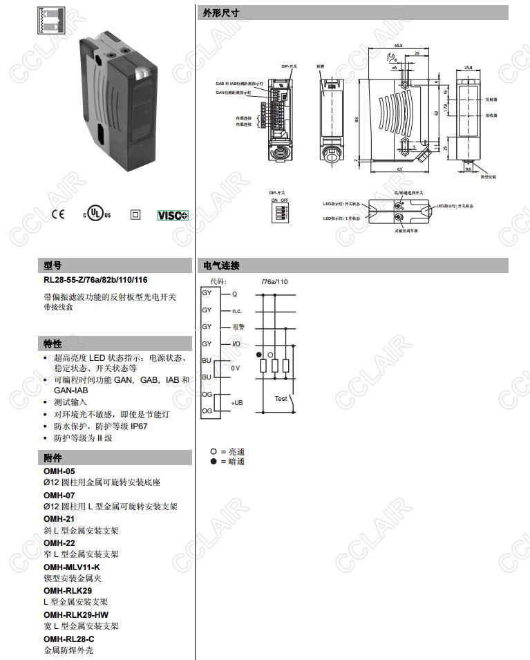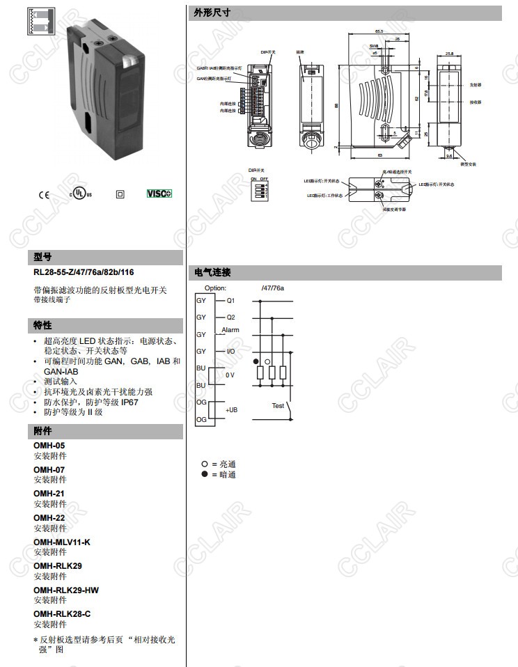 RL28-55-V-Z/47/82b/116,RL28-55-Z/47/76a/82b/116,RL28-55-Z/76a/82b/110/116,反射板型傳感器