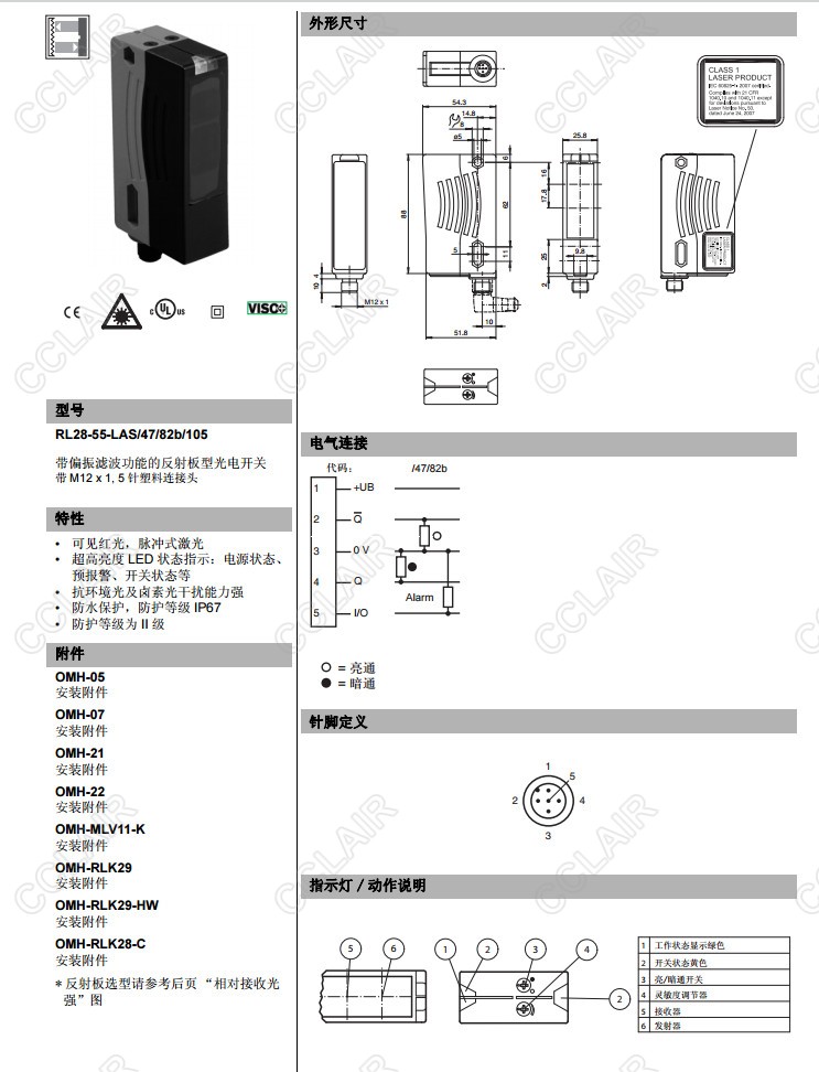 RL28-55-LAS/47/82b/105,反射板型傳感器