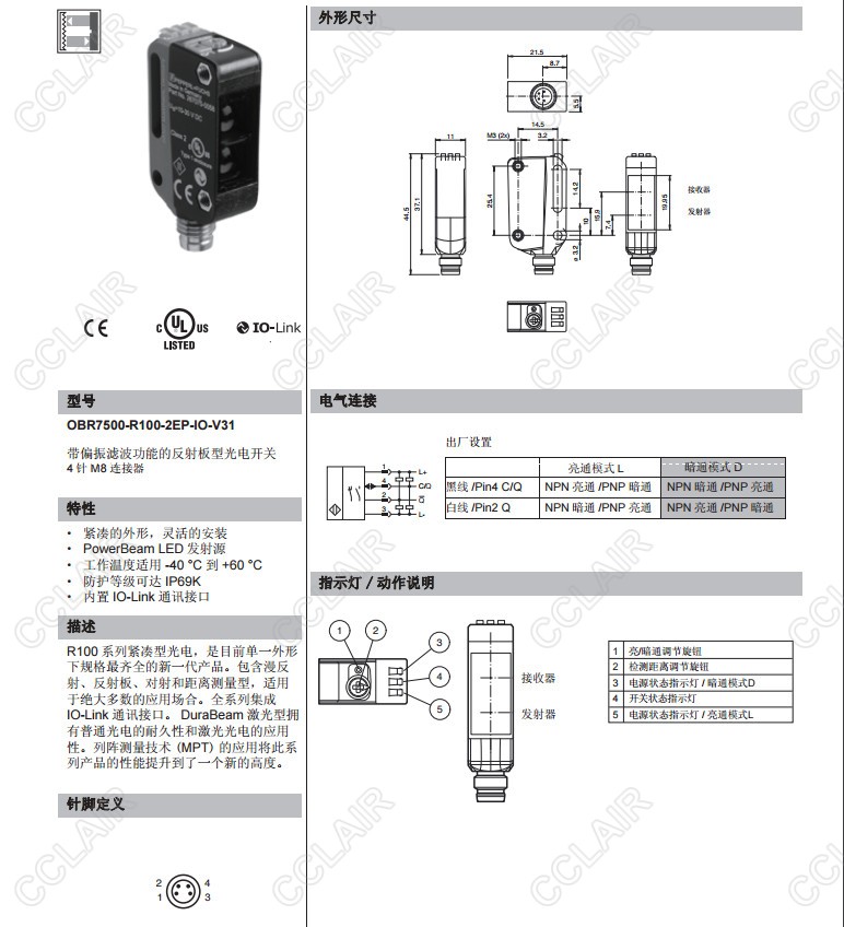 OBR12M-R100-2EP-IO-V31-L,OBR7500-R100-2EP-IO-V31,反射板型傳感器