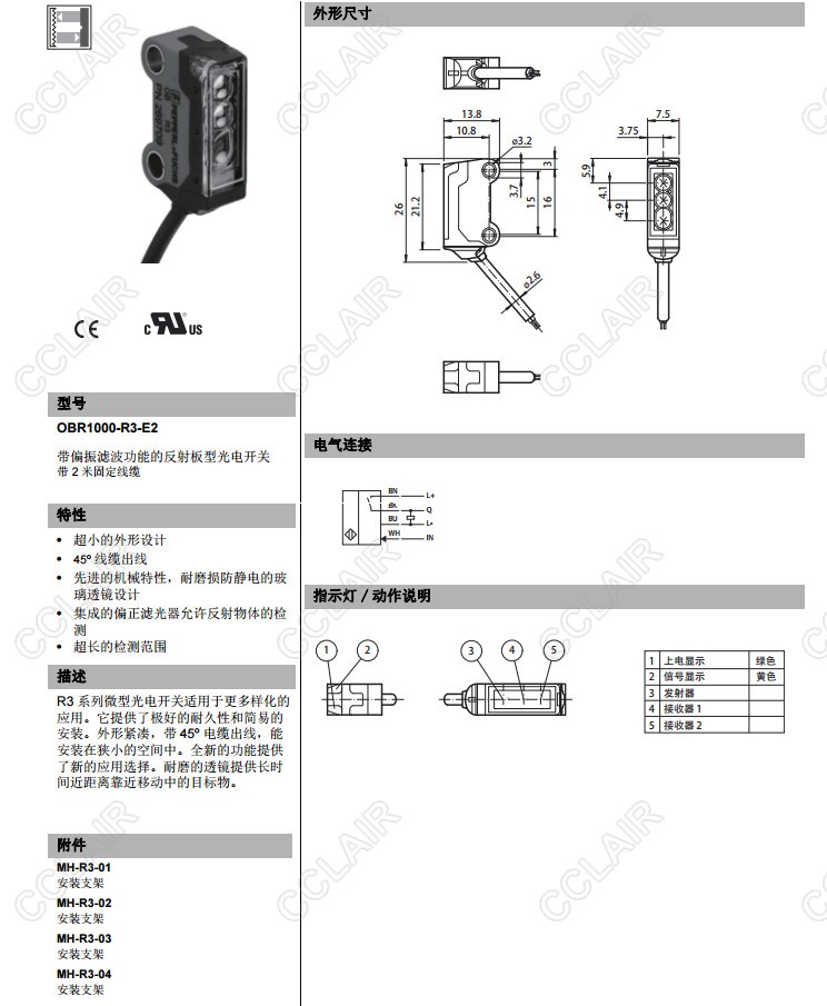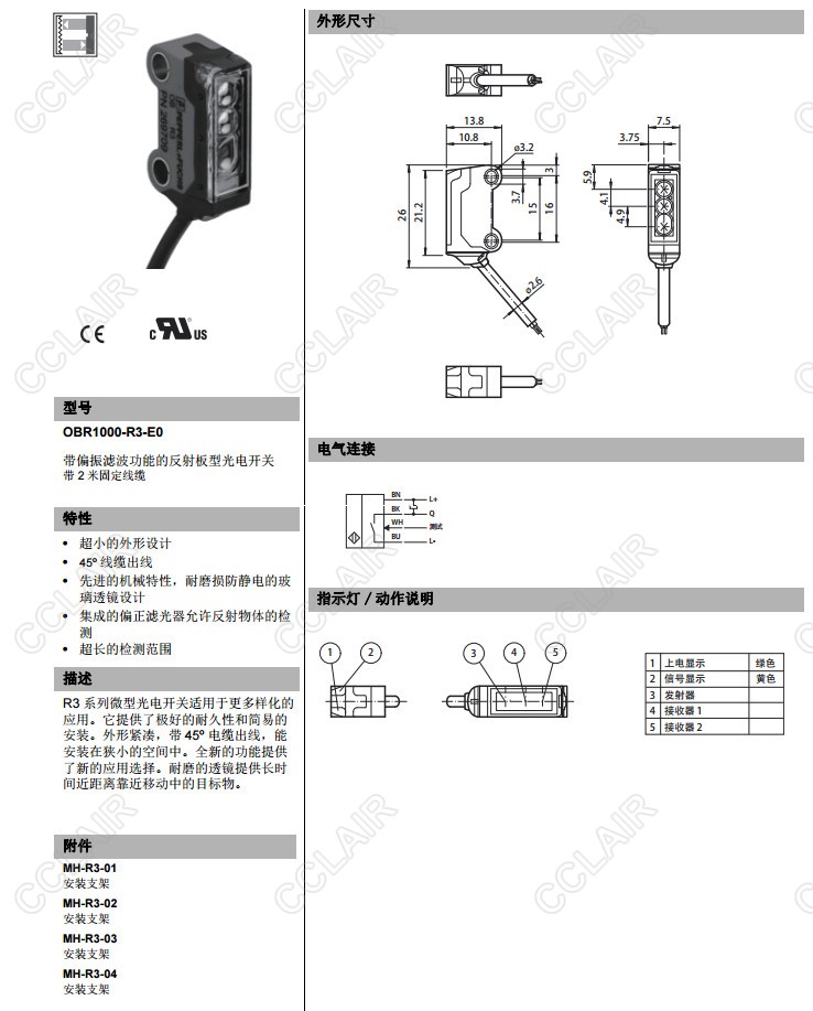 OBR1000-R3-E0,OBR1000-R3-E2,反射板型傳感器