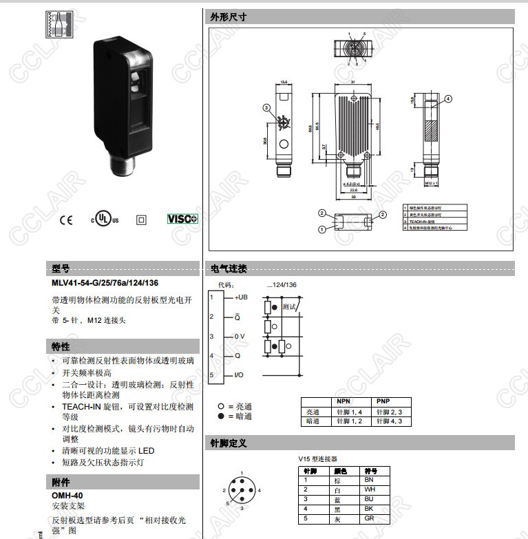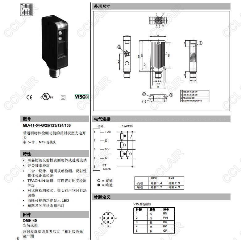 LV41-54-G/25/123/124/136,MLV41-54-G/25/76a/124/136,反射板型傳感器