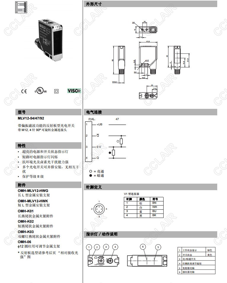 MLV12-54-LAS/92/120,MLV12-54/32/82b/124,MLV12-54/47/92,MLV12-54/49/124,反射板型傳感器