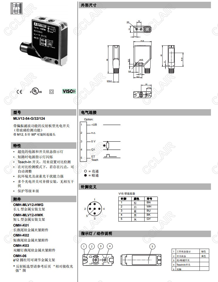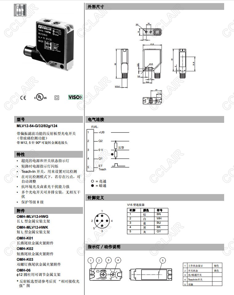MLV12-54-G/30/124/126g,MLV12-54-G/32/124,MLV12-54-G/32/82g/124,反射板型傳感器