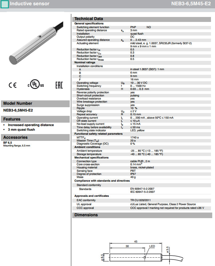 NEB3-6,5M45-E2感應(yīng)式傳感器