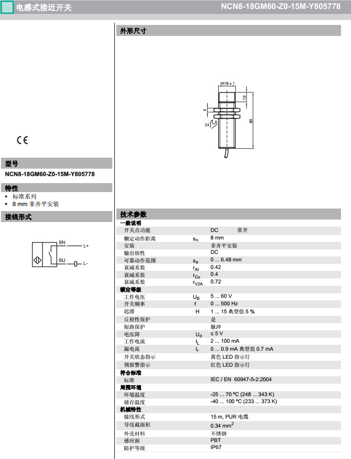 NCN8-18GM60-Z0-15M-Y805778感應(yīng)式傳感器