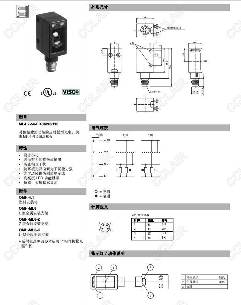 ML4.2-54-F/40b/95/110,反射板型傳感器