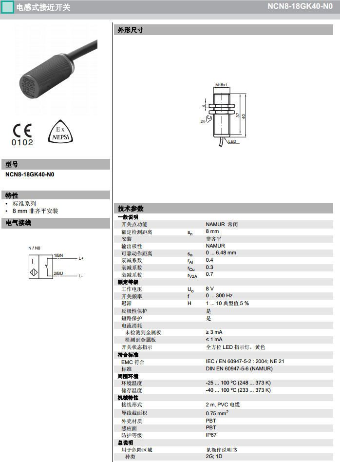 NCN8-18GK40-N0感應式傳感器
