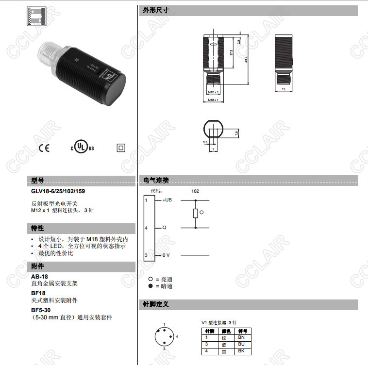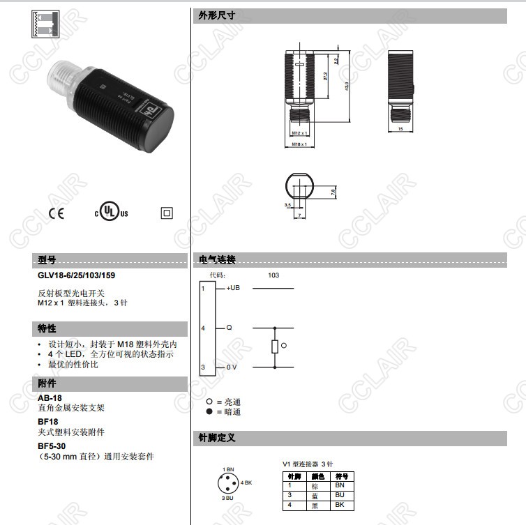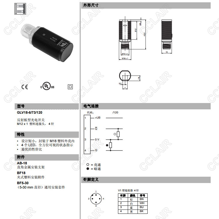 GLV18-6/25/102/159,GLV18-6/25/103/159,GLV18-6/73/120,反射板型傳感器
