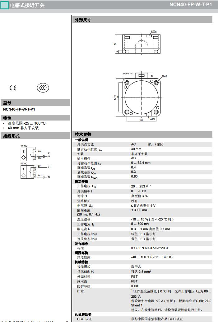 NCN40-FP-W-T-P1感應(yīng)式傳感器