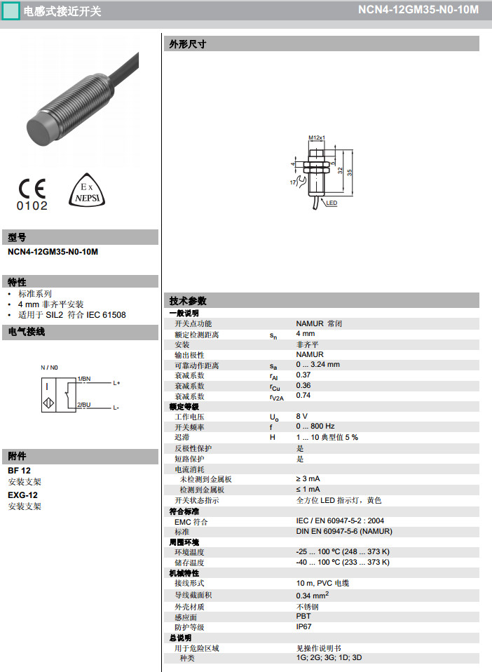 NCN4-12GM35-N0-10M感應式傳感器