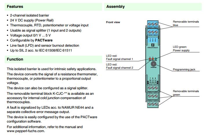 KFD2-UT2-Ex2-1,信號轉(zhuǎn)換安全柵