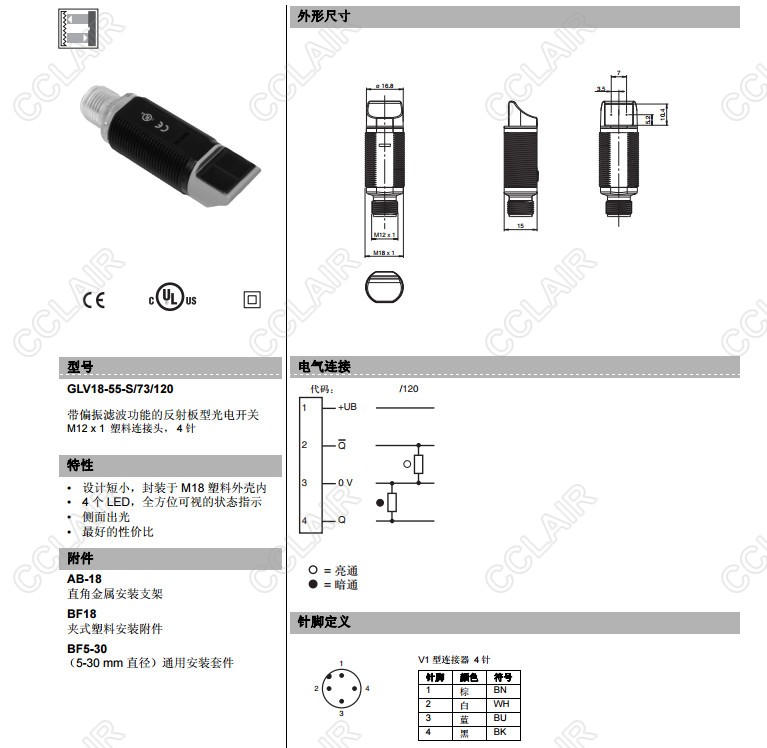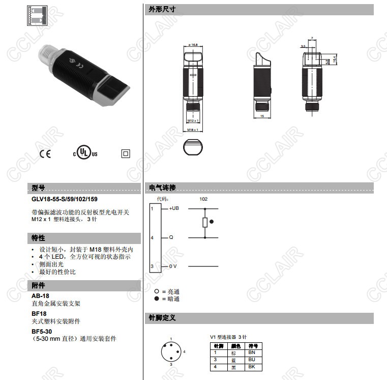 GLV18-55-S/59/102/159,GLV18-55-S/73/120,反射板型傳感器