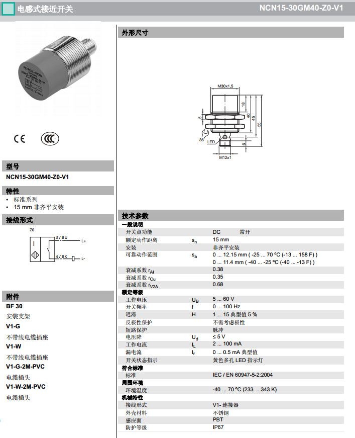NCN15-30GM40-N0-V1,NCN15-30GM40-Z0-V1,NCN15-30GM40-Z1-V1感應(yīng)式傳感器