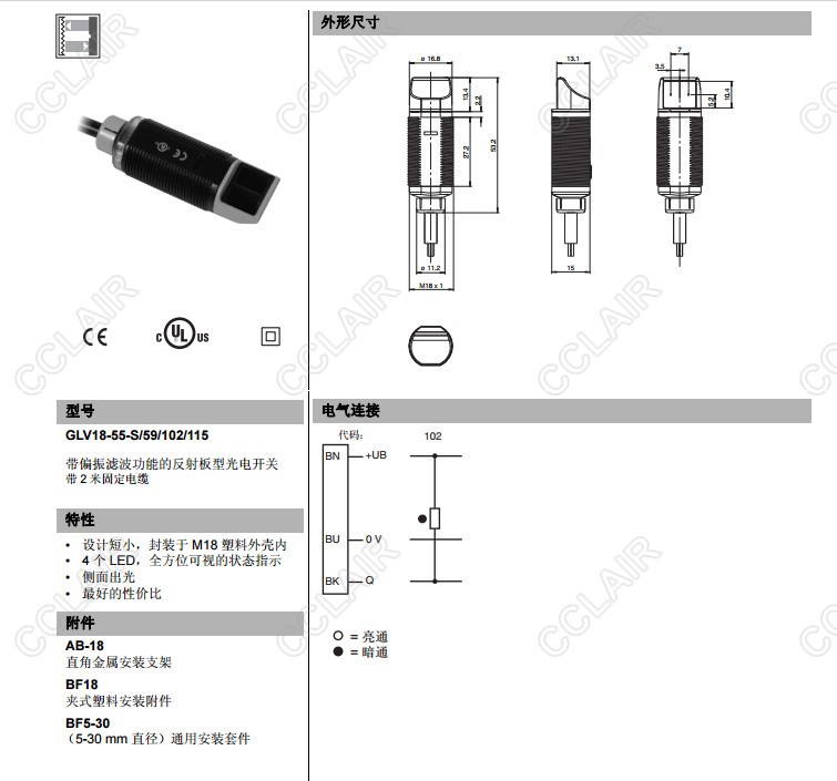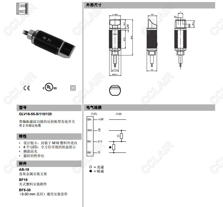 GLV18-55-S/115/120,GLV18-55-S/59/102/115,反射板型傳感器
