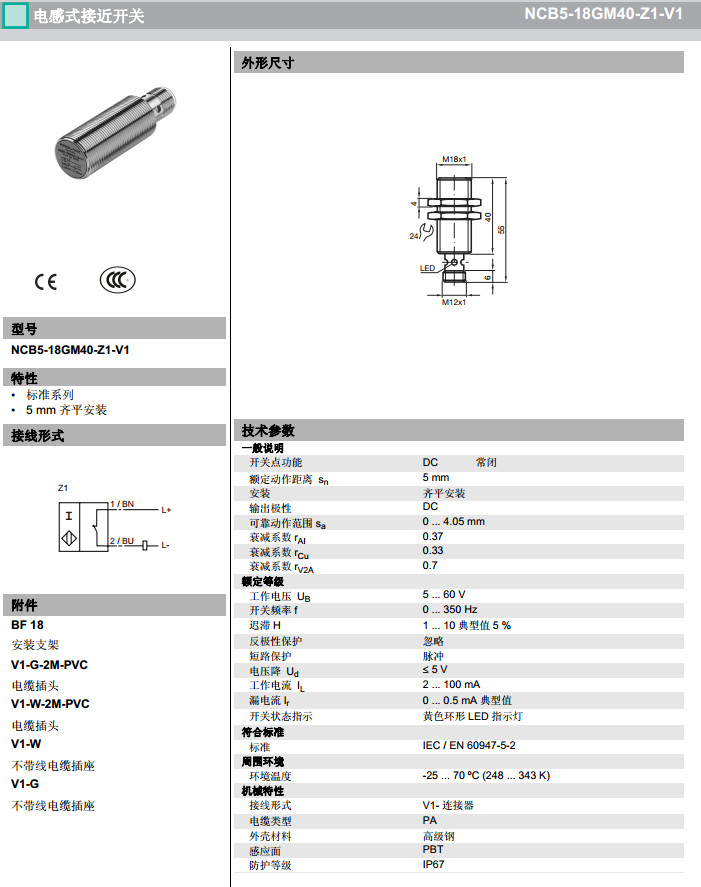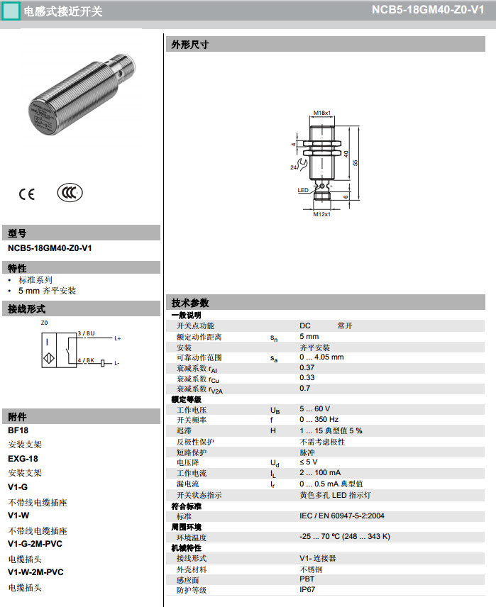 NCB5-18GM40-Z0-V1,NCB5-18GM40-Z1-V1,NCB5-18GM40-Z3-V1感應式傳感器