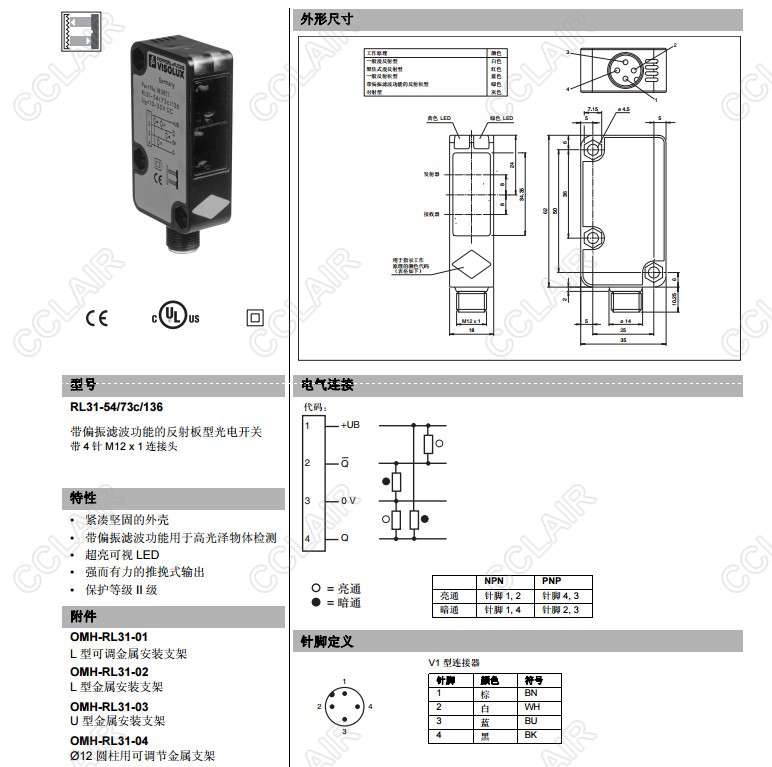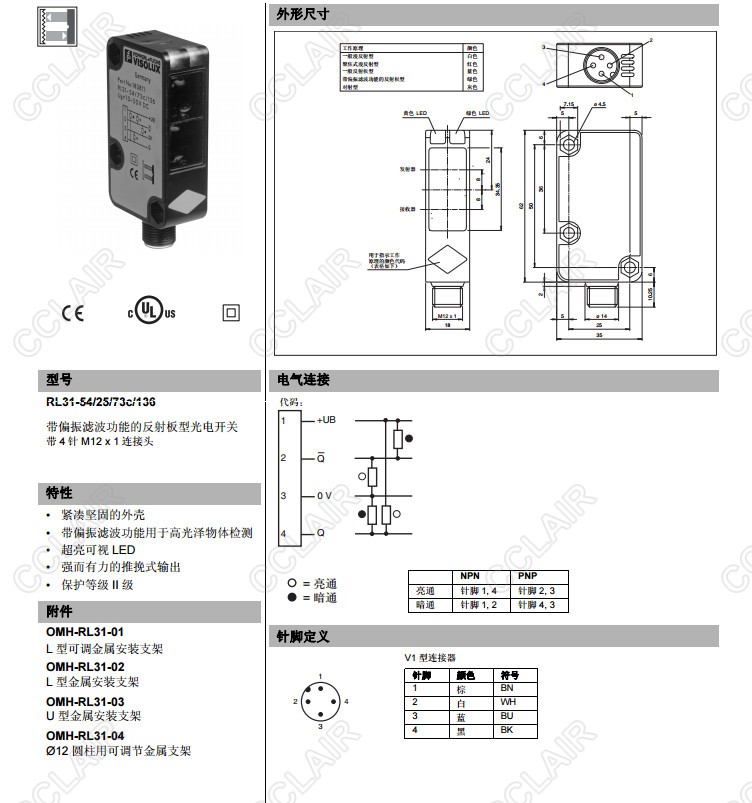 RL31-54/25/73c/136,RL31-54/73c/136,反射板型傳感器