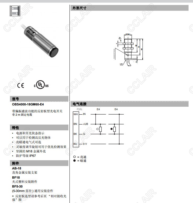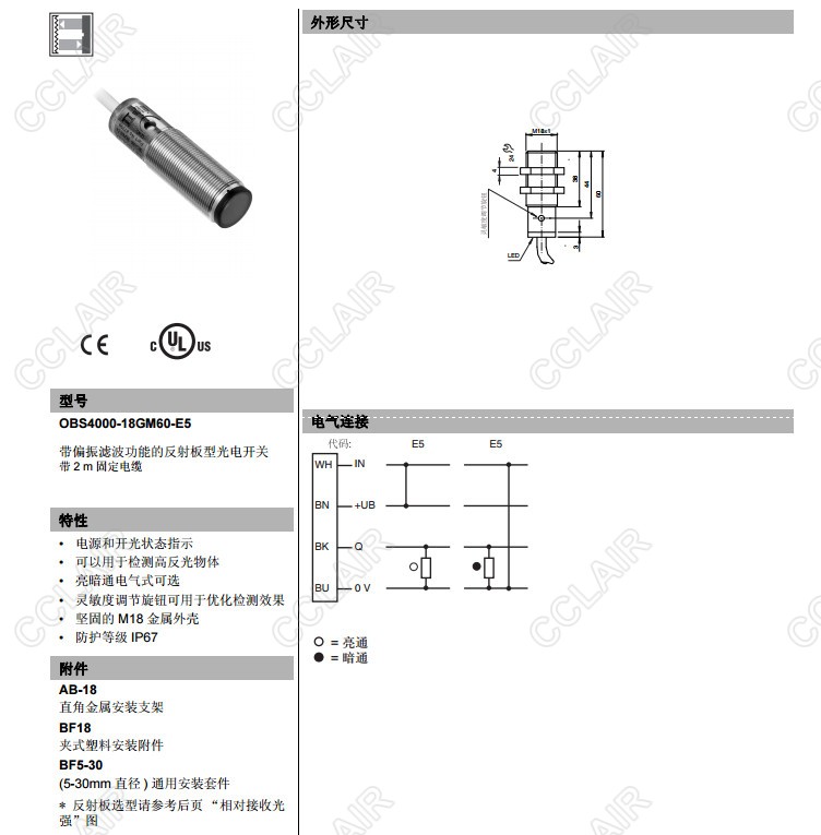 OBS4000-18GM60-E4,OBS4000-18GM60-E5,反射板型傳感器