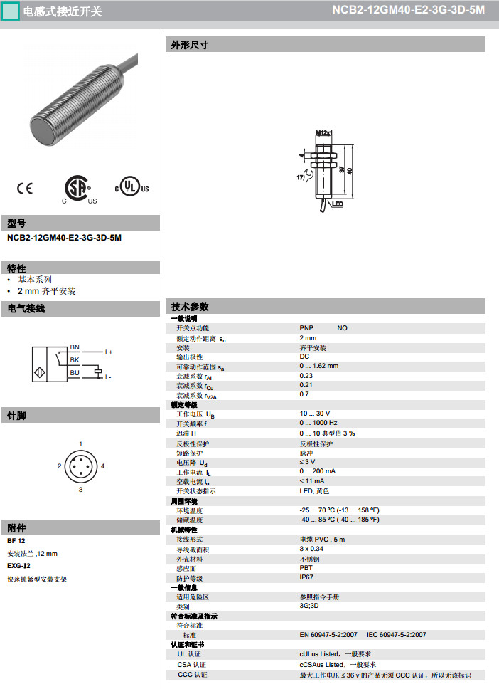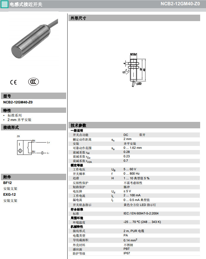 NCB2-12GM40-E2-3G-3D,NCB2-12GM40-E2-3G-3D-5M,NCB2-12GM40-Z0,NCB2-12GM40-Z1感應(yīng)式傳感器