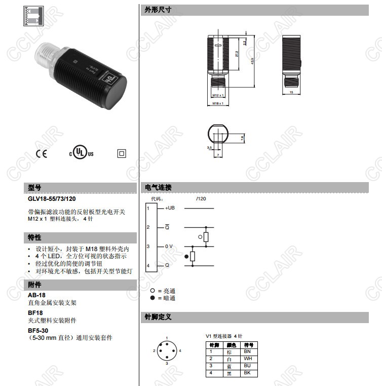 GLV18-55/73/120,反射板型傳感器