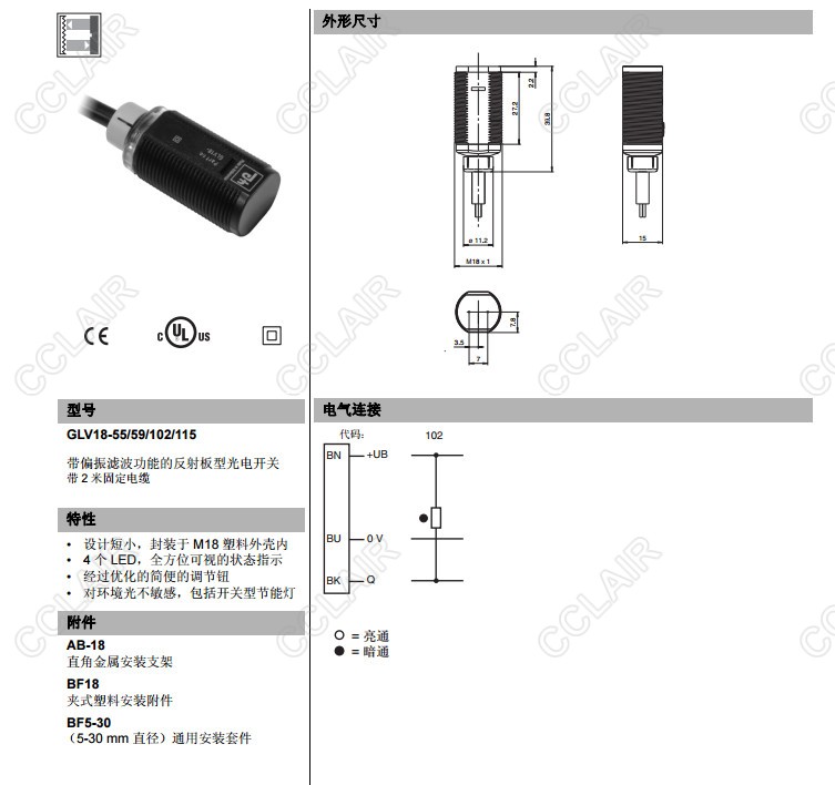 GLV18-55/59/102/115,反射板型傳感器